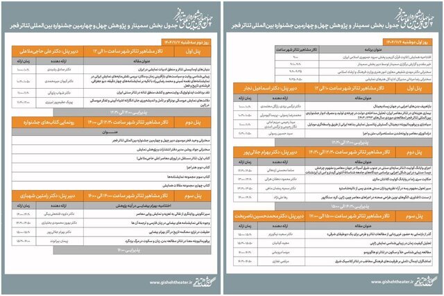 به گزارش خبرگزاری خبرآنلاین به نقل از روابط عمومی جشنواره تئاتر فجر، جدول برگزاری بخش سمینار و پژوهش چهلوچهارمین جشنواره بینالمللی تئاتر فجر منتشر شد.