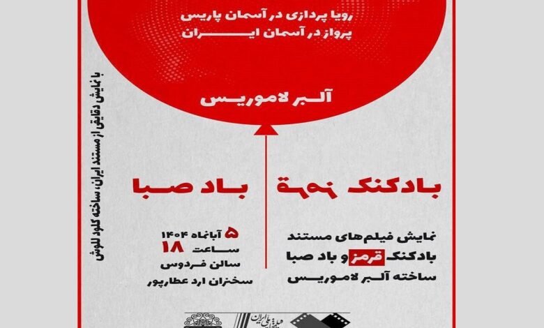 به گزارش خبرگزاری خبرآنلاین به نقل از پایگاه خبری موزه سینمای ایران، در این برنامه، دو فیلم «بادکنک قرمز» و «باد صبا» به روی پرده خواهند رفت. فیلم «بادکنک قرمز» به ماجراهای پسر نوجوانی میپردازد که روزی در کوچههای محله منیلمانتان پاریس، بادکنکی قرمز پیدا میکند و رابطهای خیالانگیز میان او و بادکنک شکل میگیرد. فیلم در سال ۱۹۵۶، برای لاموریس جایزه اسکار بهترین فیلمنامه غیراقتباسی و نخل طلای کن برای بهترین فیلم کوتاه را به همراه داشت.